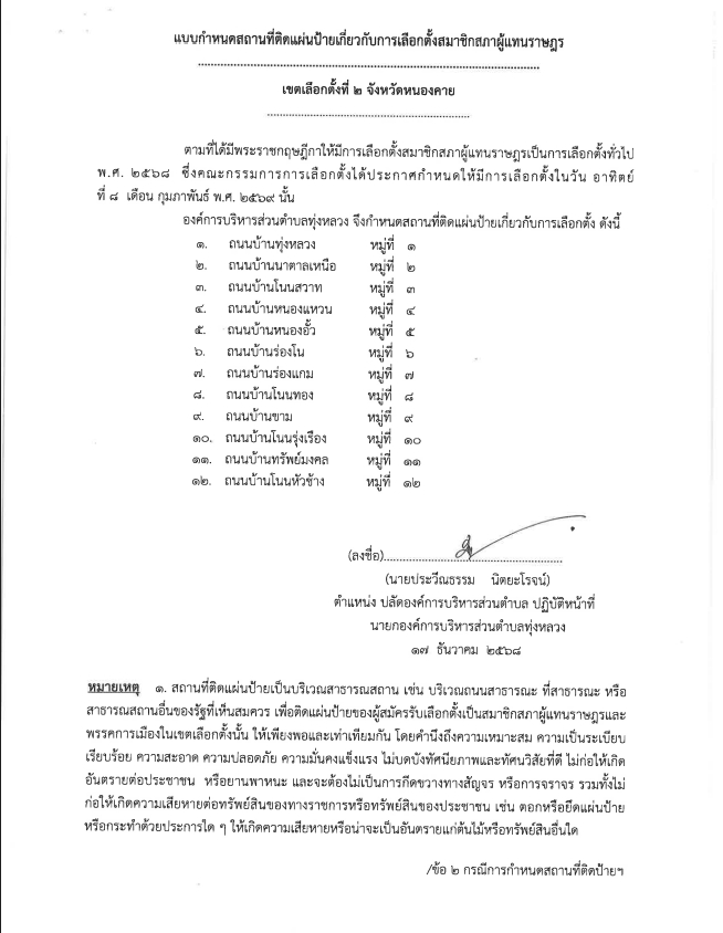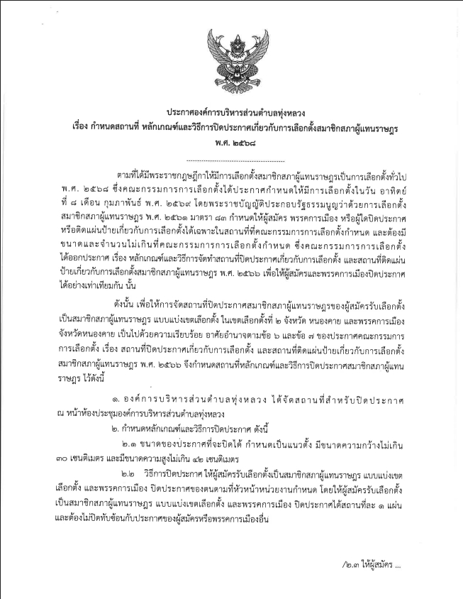 กำหนดสถานที่ หลักเกณฑ์และวิธีการปิดประกาศ